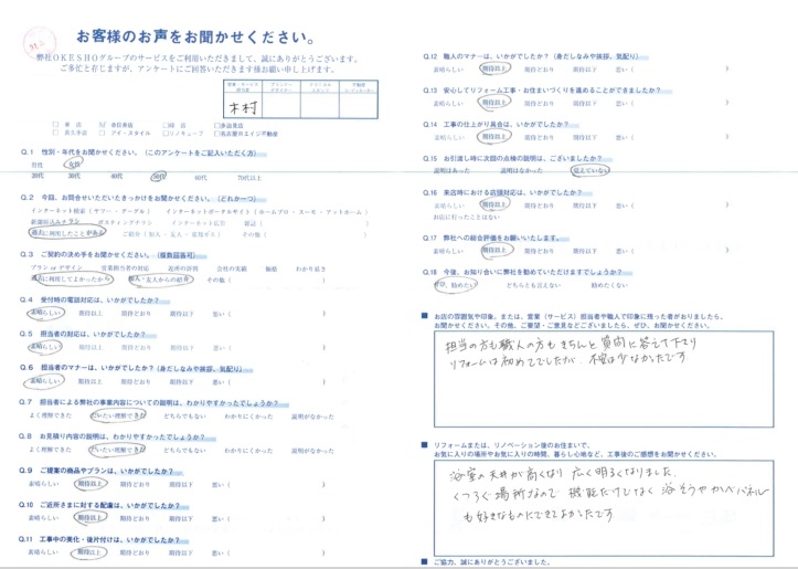 担当の方も 職人の方も きちんと質問に答えて下さり リフォームは初めてでしたが、不安は少なかったです。