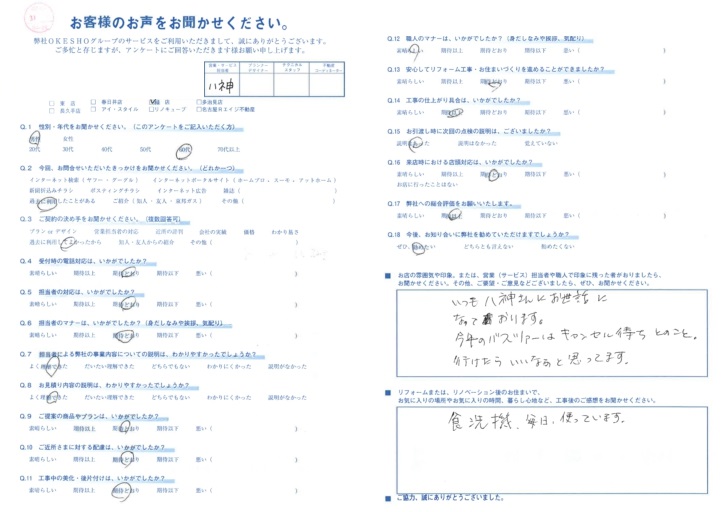 お店の雰囲気や印象。または、営業(サービス)担当者や職人で印象に残った者がおりましたら、お聞かせください。その他、ご要望・ご意見などございましたら、ぜひ、お聞かせください。