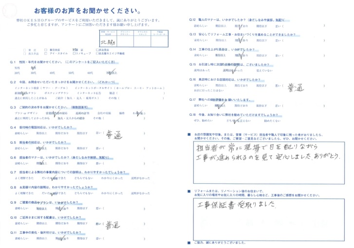 担当者が常に現場で目を配りながら工事が進められるのを見て安心しました。ありがとう。