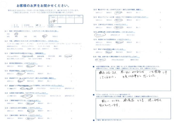 お店の雰囲気や印象。または、営業(サービス)担当者や職人で印象に残った者がおりましたら、お聞かせください。その他、ご要望・ご意見などございましたら、ぜひ、お聞かせください。
