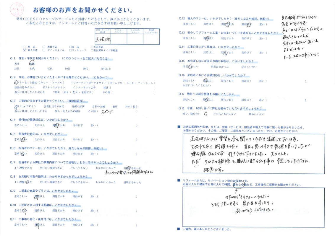 スピードもあり 的確でした。当日の思い付きや無理も言いましたが 嫌な顔ひとつせず 引きうけて下さいました。大工さんも。