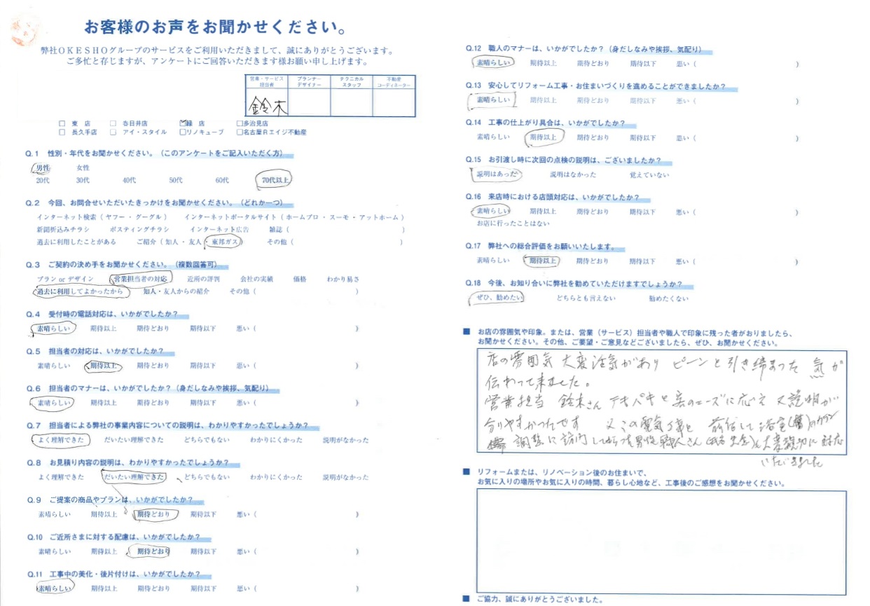 営業担当 鈴木さんテキパキと客のニーズに応え 又説明が分かりやすかったです。
