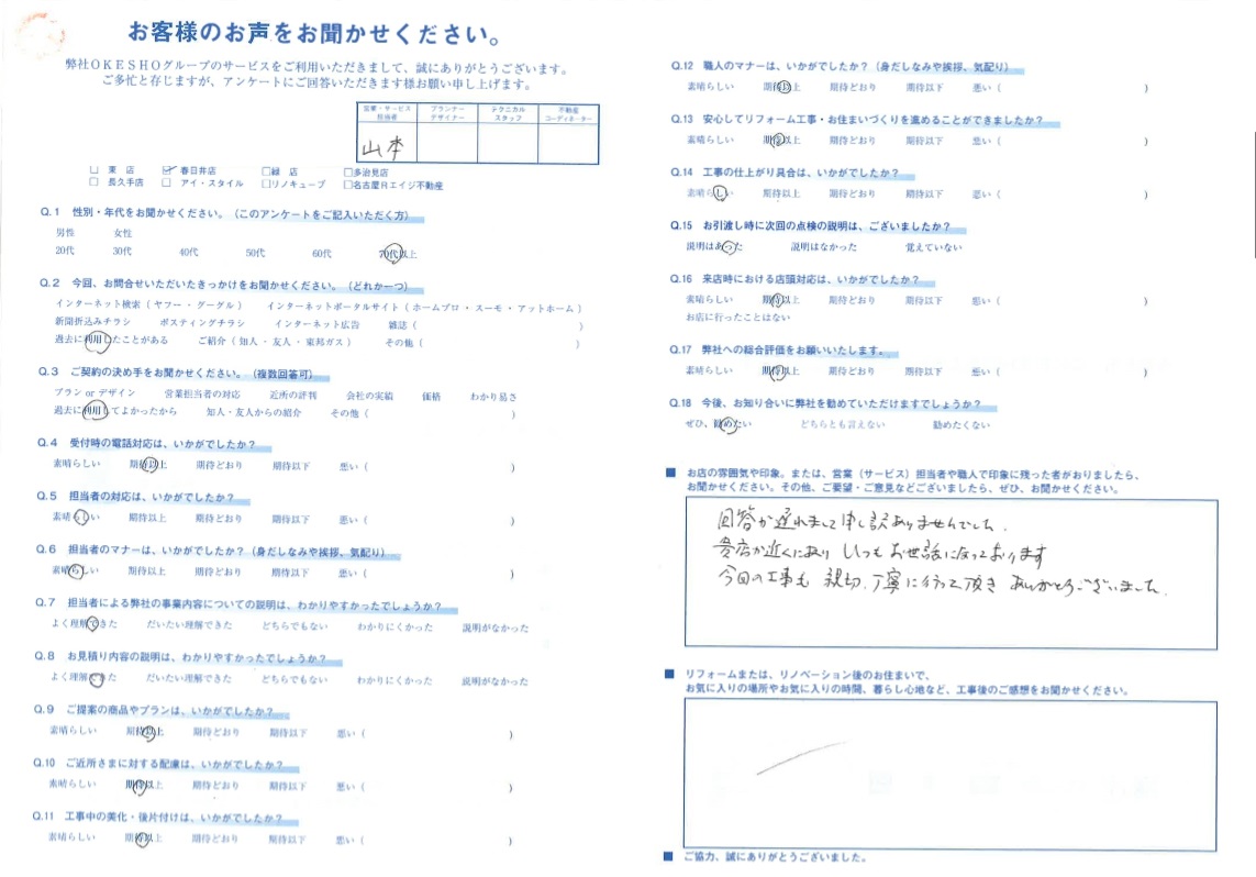 今回の工事も 親切・丁寧に行って頂きありがとうございました。