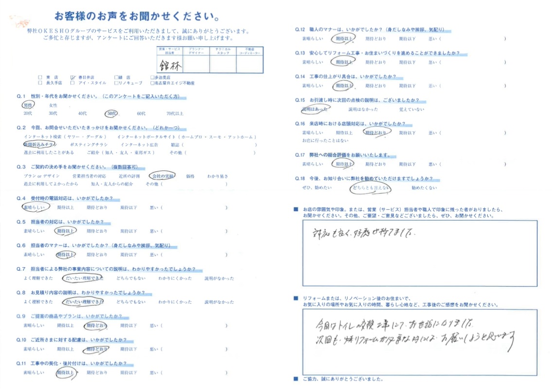 お店の雰囲気や印象。または、営業(サービス)担当者や職人で印象に残った者がおりましたら、お聞かせください。その他、ご要望・ご意見などございましたら、ぜひ、お聞かせください。
