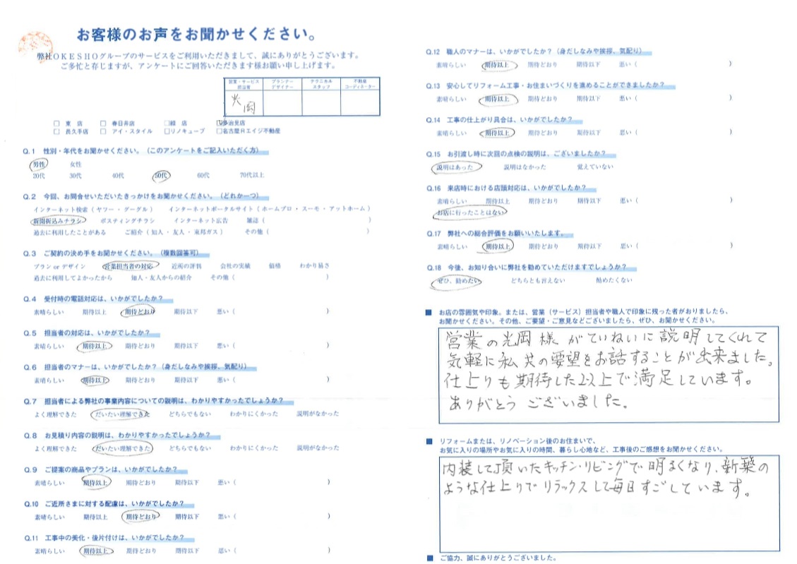 営業の光岡様がていねいに説明してくれて気軽に私共の要望をお話することが出来ました。