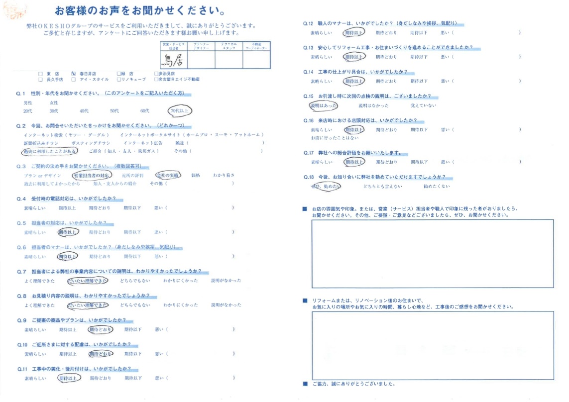 お客様アンケート一覧