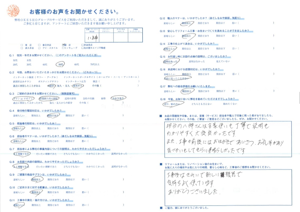 また、工事の前後には おはがきで あいさつ・お礼等があり 気づかいもしてもらい素晴らしかったです。