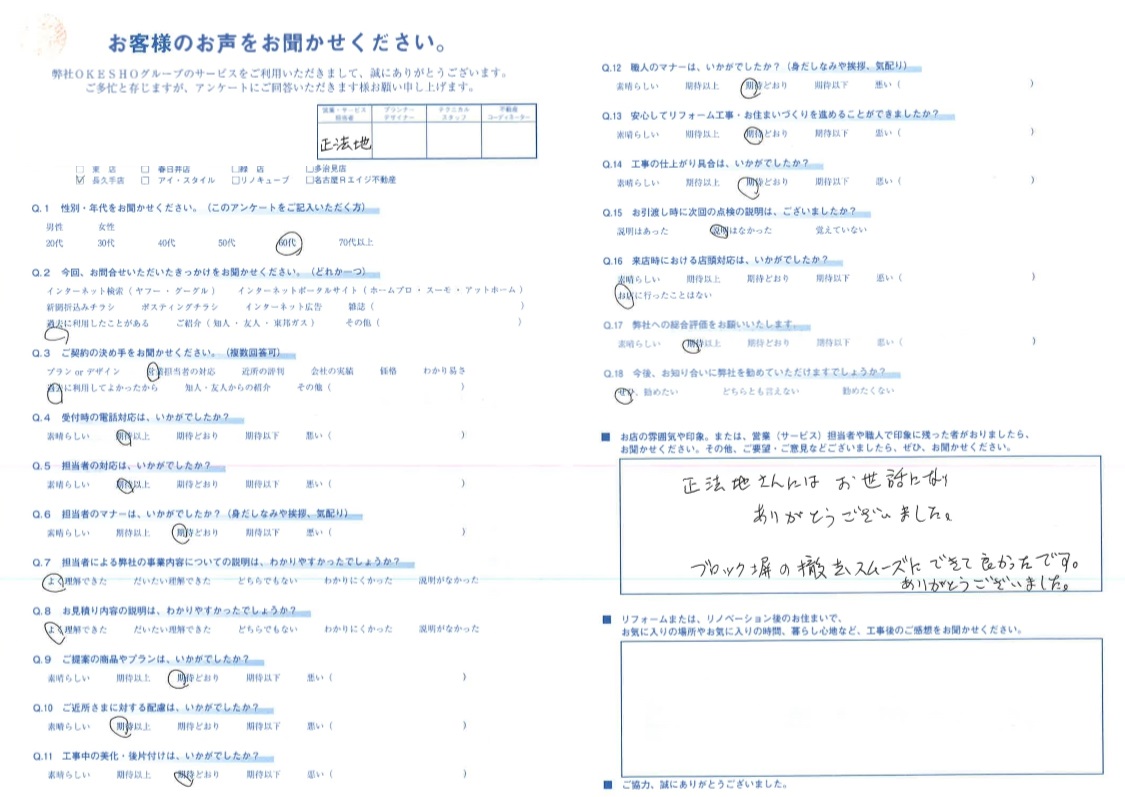 ブロック塀の撤去スムーズにできて良かったです。ありがとうございました。