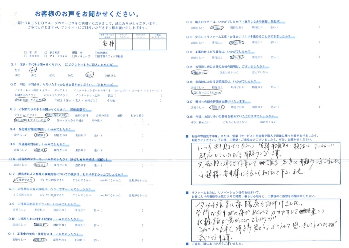 お店の雰囲気や印象。または、営業(サービス)担当者や職人で印象に残った者がおりましたら、お聞かせください。その他、ご要望・ご意見などございましたら、ぜひ、お聞かせください。