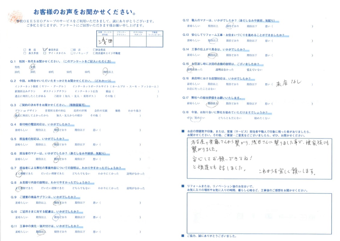 お店の雰囲気や印象。または、営業(サービス)担当者や職人で印象に残った者がおりましたら、お聞かせください。その他、ご要望・ご意見などございましたら、ぜひ、お聞かせください。