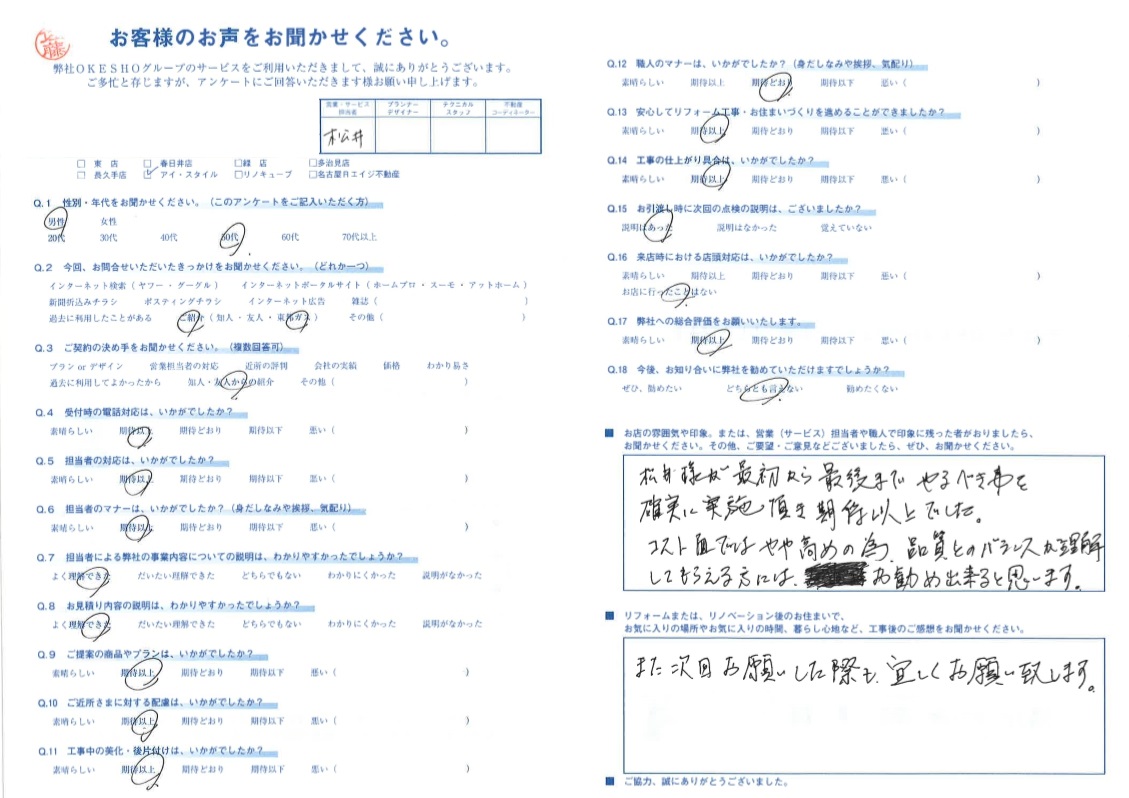 松井様が最初から最後までやるべき事を確実に実施頂き 期待以上でした。