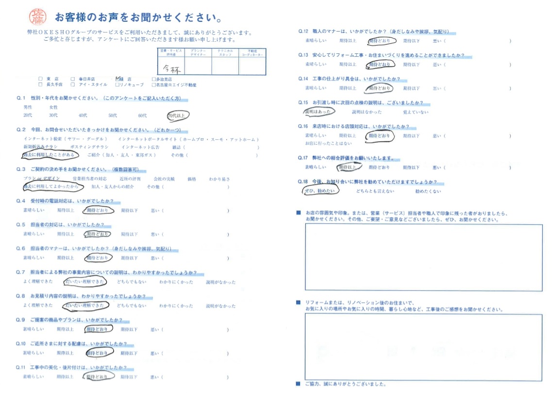 お客様アンケート一覧