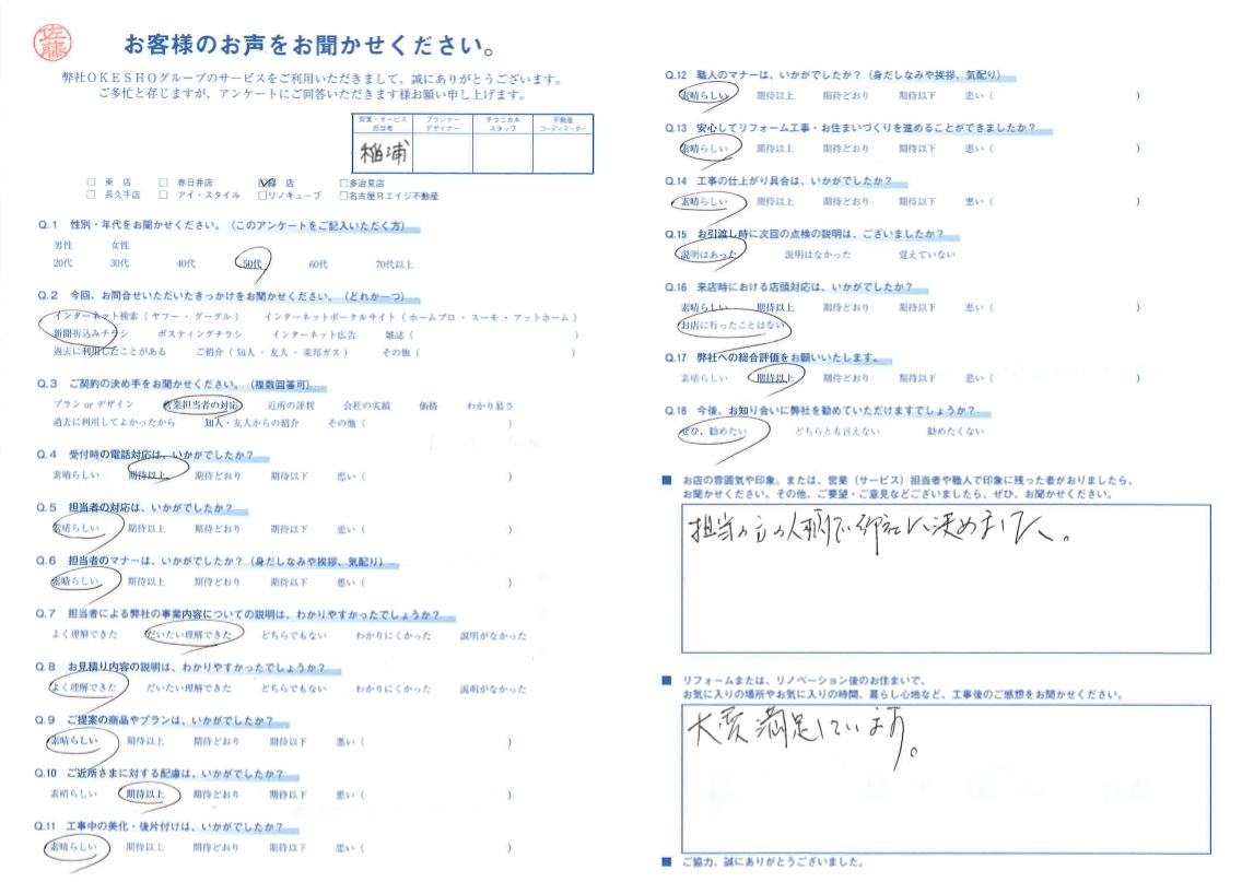 お店の雰囲気や印象。または、営業(サービス)担当者や職人で印象に残った者がおりましたら、お聞かせください。その他、ご要望・ご意見などございましたら、ぜひ、お聞かせください。
