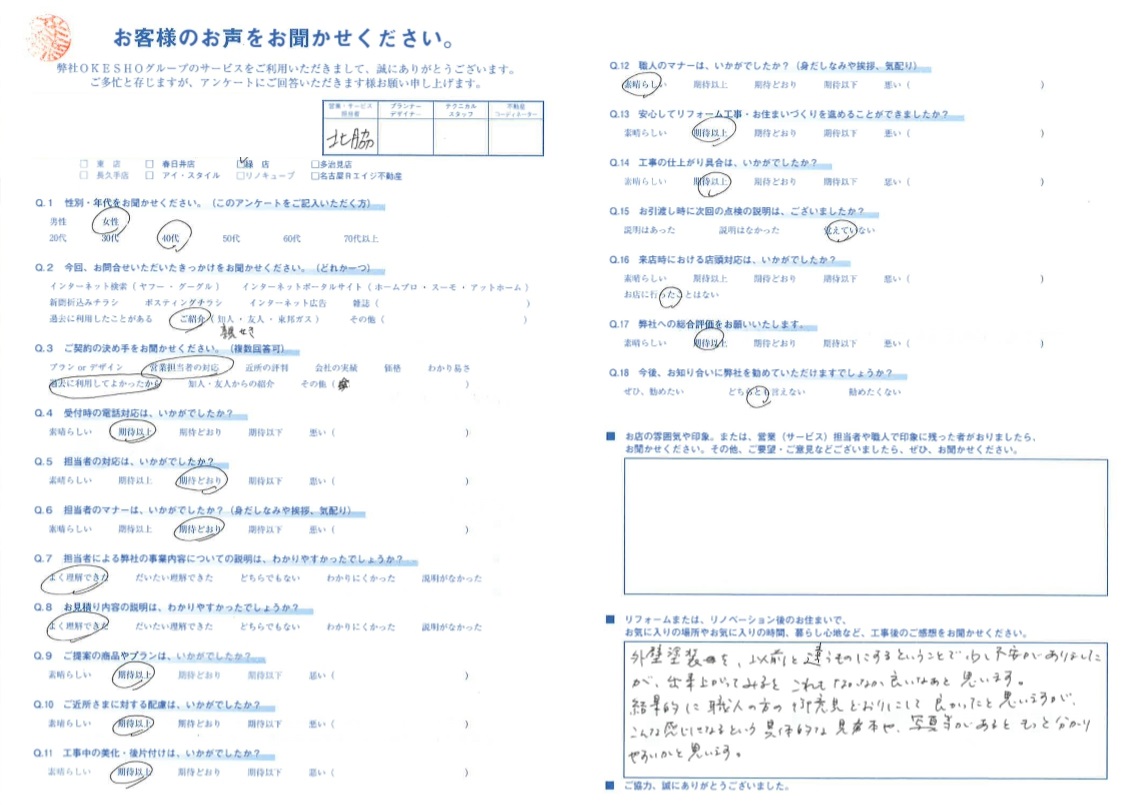 結果的に職人の方の御意見どおりにして良かったと思いますが、こんな感じになるという具体的な見本や写真等があると もっと分かりやすいかと思います。