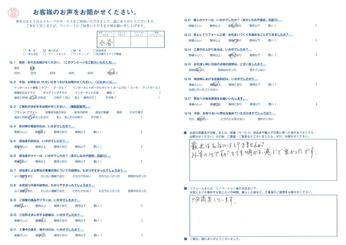 お店の雰囲気や印象。または、営業(サービス)担当者や職人で印象に残った者がおりましたら、お聞かせください。その他、ご要望・ご意見などございましたら、ぜひ、お聞かせください。