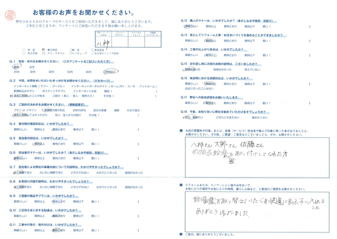 お店の雰囲気や印象。または、営業(サービス)担当者や職人で印象に残った者がおりましたら、お聞かせください。その他、ご要望・ご意見などございましたら、ぜひ、お聞かせください。