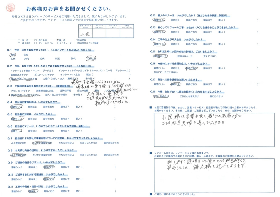 小笹様は言葉も良く 感じの最高の方で とても私共夫婦も喜んでおります。