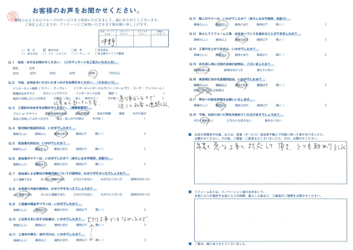お店の雰囲気や印象。または、営業(サービス)担当者や職人で印象に残った者がおりましたら、お聞かせください。その他、ご要望・ご意見などございましたら、ぜひ、お聞かせください。