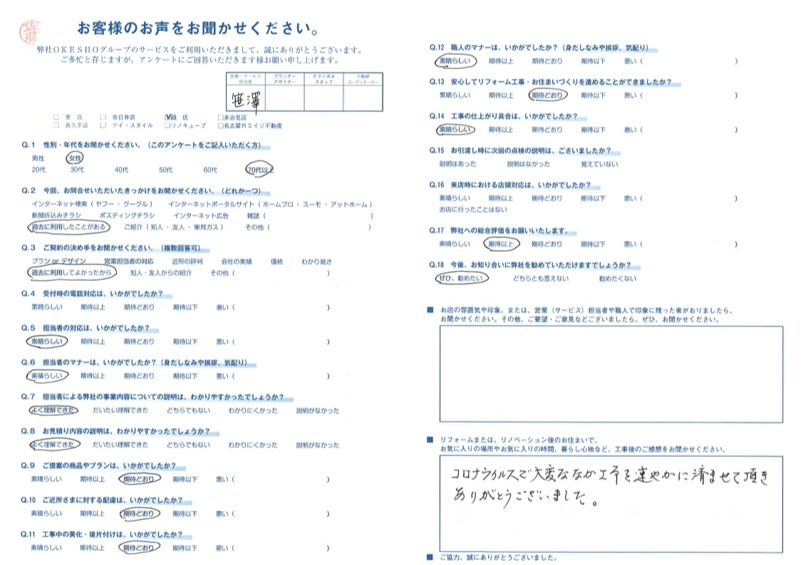 お客様アンケート一覧