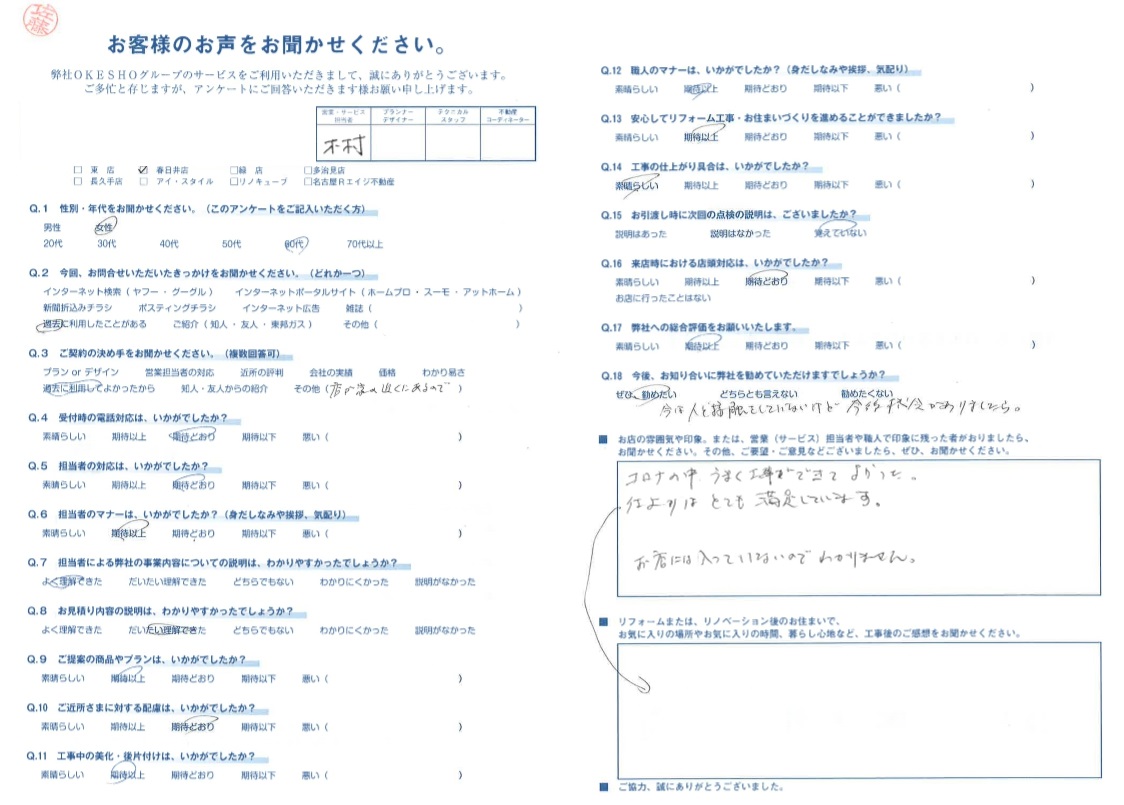 お店の雰囲気や印象。または、営業(サービス)担当者や職人で印象に残った者がおりましたら、お聞かせください。その他、ご要望・ご意見などございましたら、ぜひ、お聞かせください。