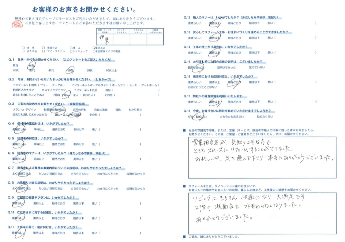 営業担当者が、気配り上手な方で、とてもスムーズにリフォームすることができました。