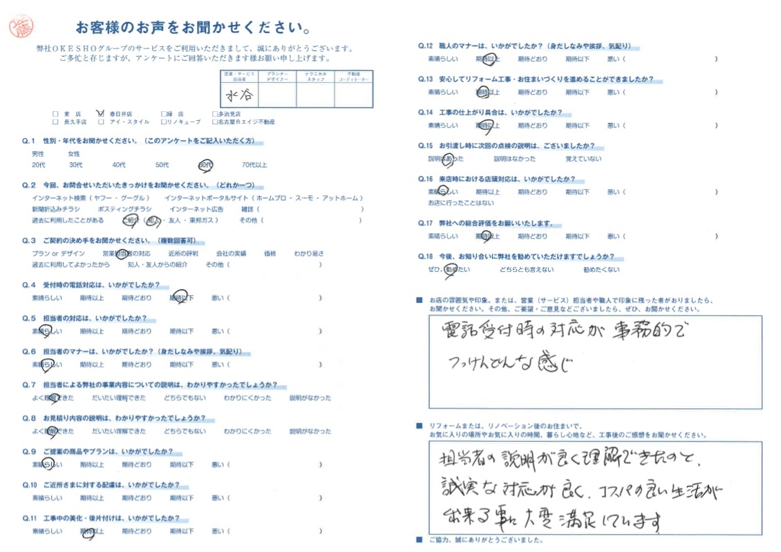 お店の雰囲気や印象。または、営業(サービス)担当者や職人で印象に残った者がおりましたら、お聞かせください。その他、ご要望・ご意見などございましたら、ぜひ、お聞かせください。