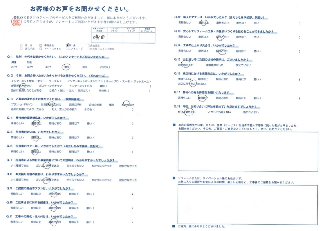お客様アンケート一覧