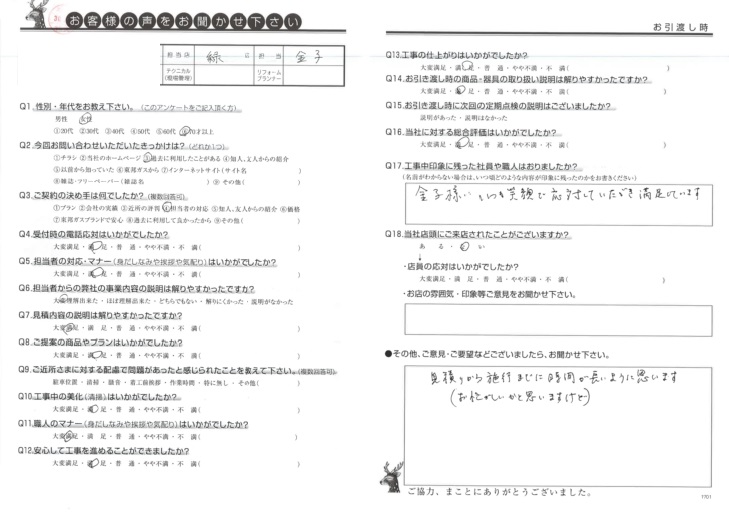 見積りから施行までに時間が長いように思います。(お忙しいかと思いますけど)