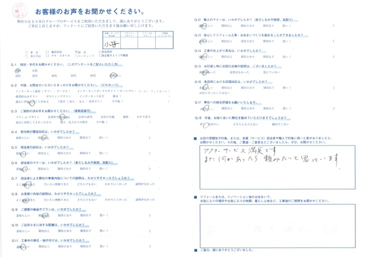 お店の雰囲気や印象。または、営業(サービス)担当者や職人で印象に残った者がおりましたら、お聞かせください。その他、ご要望・ご意見などございましたら、ぜひ、お聞かせください。
