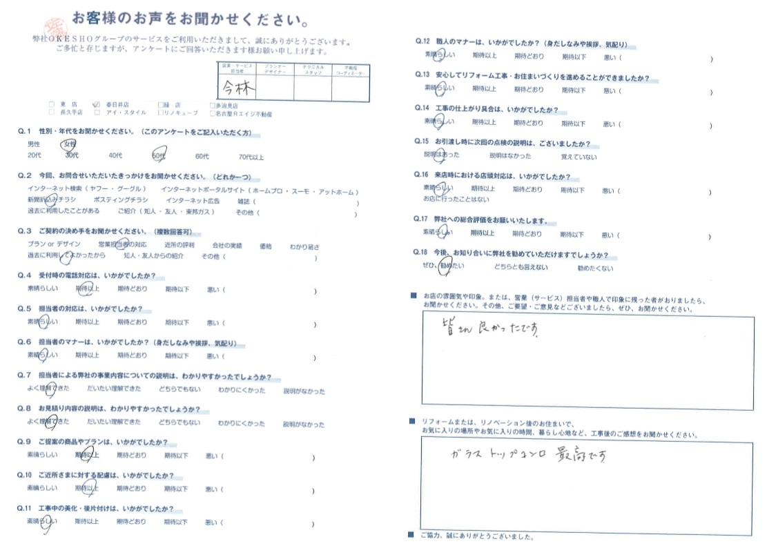 お店の雰囲気や印象。または、営業(サービス)担当者や職人で印象に残った者がおりましたら、お聞かせください。その他、ご要望・ご意見などございましたら、ぜひ、お聞かせください。