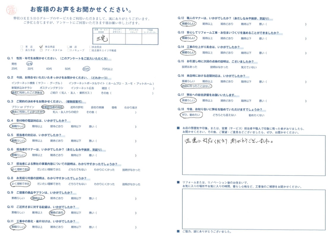 お客様アンケート一覧