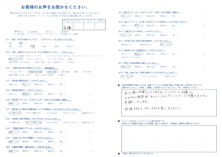 お店の雰囲気や印象。または、営業(サービス)担当者や職人で印象に残った者がおりましたら、お聞かせください。その他、ご要望・ご意見などございましたら、ぜひ、お聞かせください。