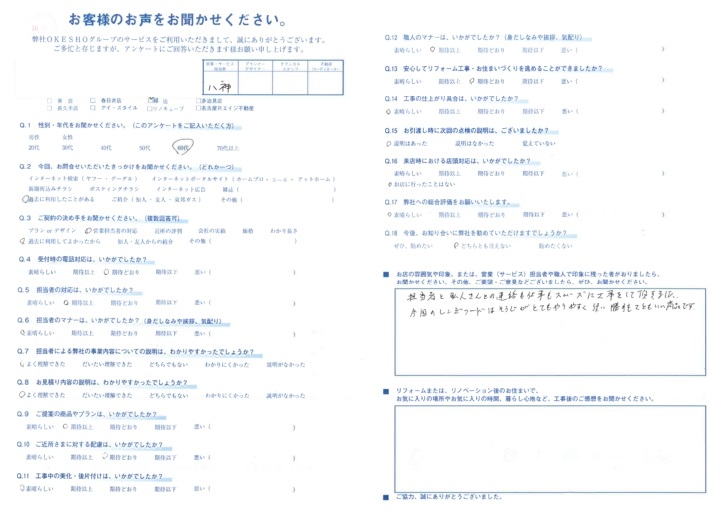 お店の雰囲気や印象。または、営業(サービス)担当者や職人で印象に残った者がおりましたら、お聞かせください。その他、ご要望・ご意見などございましたら、ぜひ、お聞かせください。