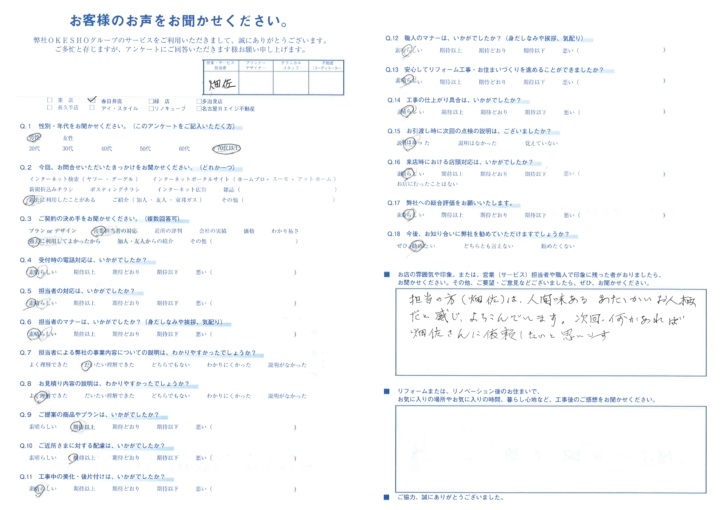 担当の方(畑佐)は人間味ある あたたかいお人柄だと感じよろこんでいます。次回 何かあれば畑佐さんに依頼したいと思います。