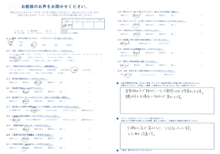 お店の雰囲気や印象。または、営業(サービス)担当者や職人で印象に残った者がおりましたら、お聞かせください。その他、ご要望・ご意見などございましたら、ぜひ、お聞かせください。
