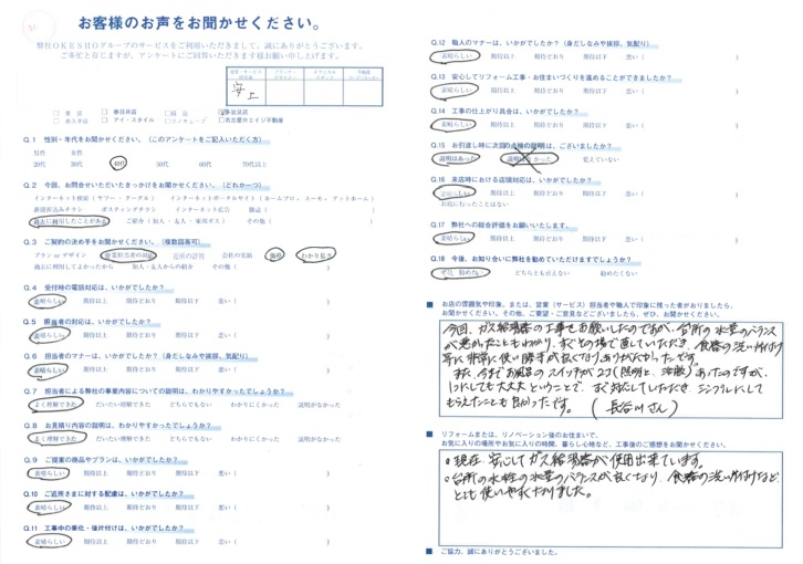 ○台所の水栓の水量のバランスが良くなり、食器の洗い片付けなど とても使いやすくなりました。