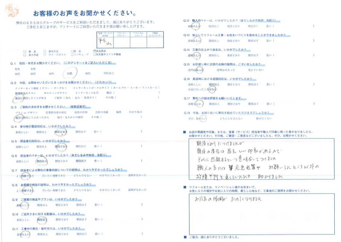 お店の雰囲気や印象。または、営業(サービス)担当者や職人で印象に残った者がおりましたら、お聞かせください。その他、ご要望・ご意見などございましたら、ぜひ、お聞かせください。