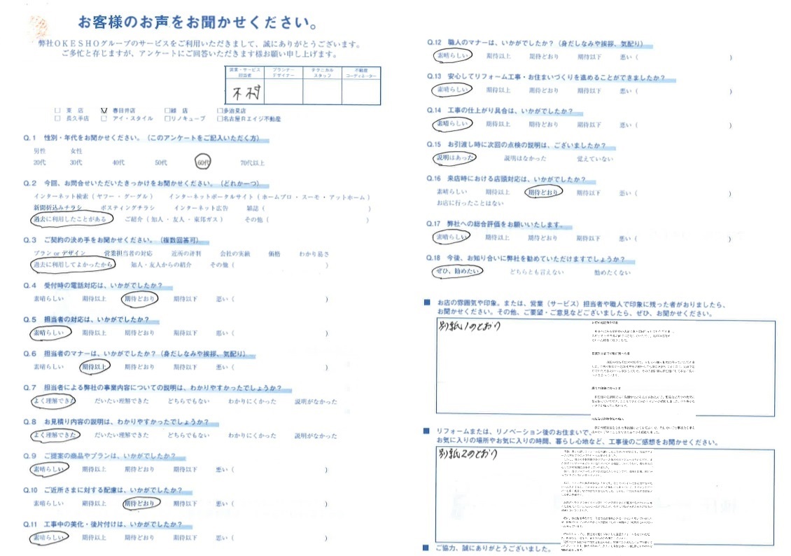 何れにしましても、桶庄様で築25年にして全面リフォームさせていただき、新築のようになり、妻も私も心から満足しています。