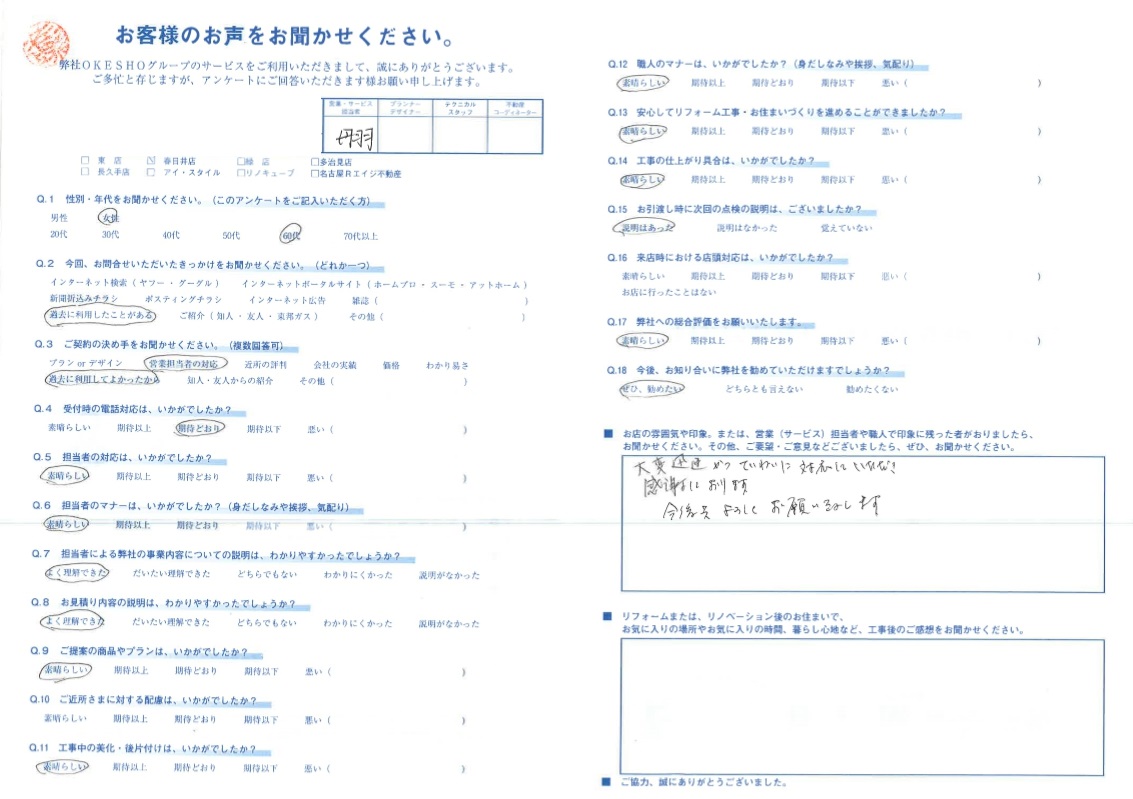 お店の雰囲気や印象。または、営業(サービス)担当者や職人で印象に残った者がおりましたら、お聞かせください。その他、ご要望・ご意見などございましたら、ぜひ、お聞かせください。