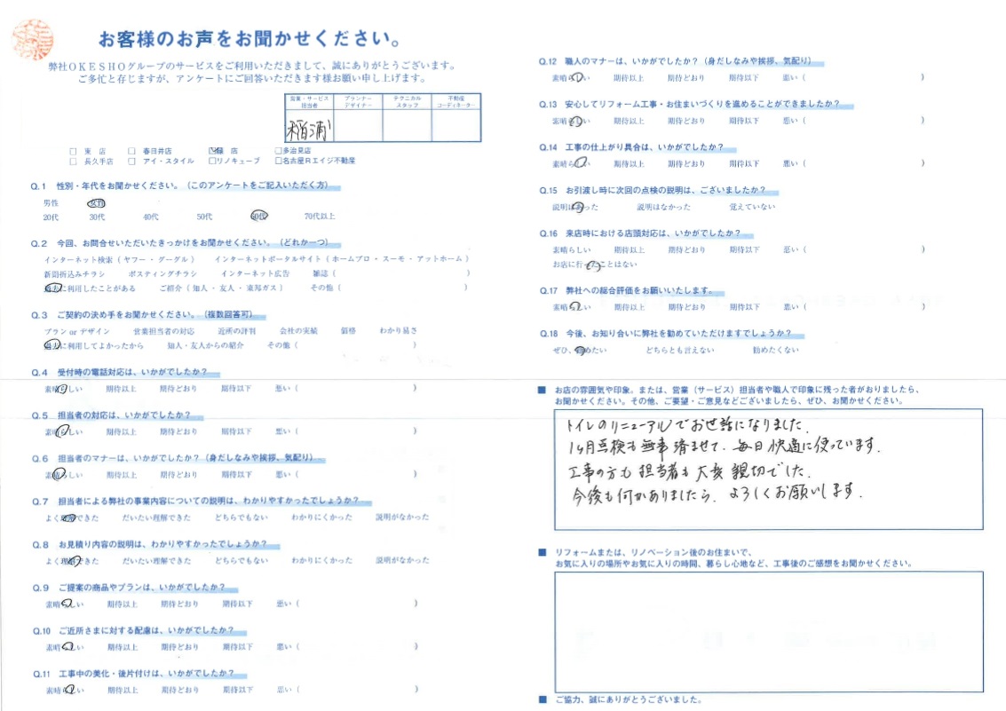 トイレのリニューアルでお世話になりました。