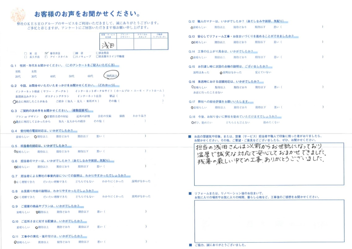 担当の浅田さんは以前からお世話になっており、温厚で誠実な対応で安心しておまかせできました。