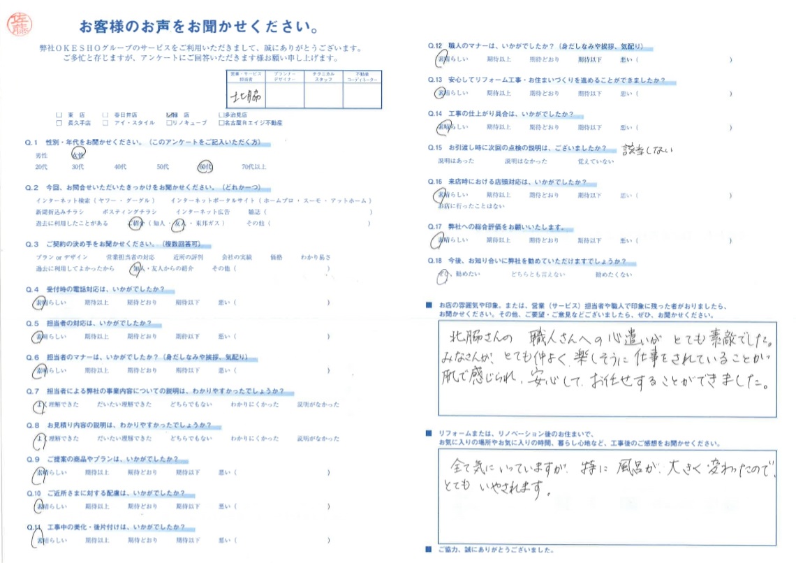 みなさんが とても仲よく、楽しそうに仕事をされていることが肌で感じられ、安心してお任せすることができました。