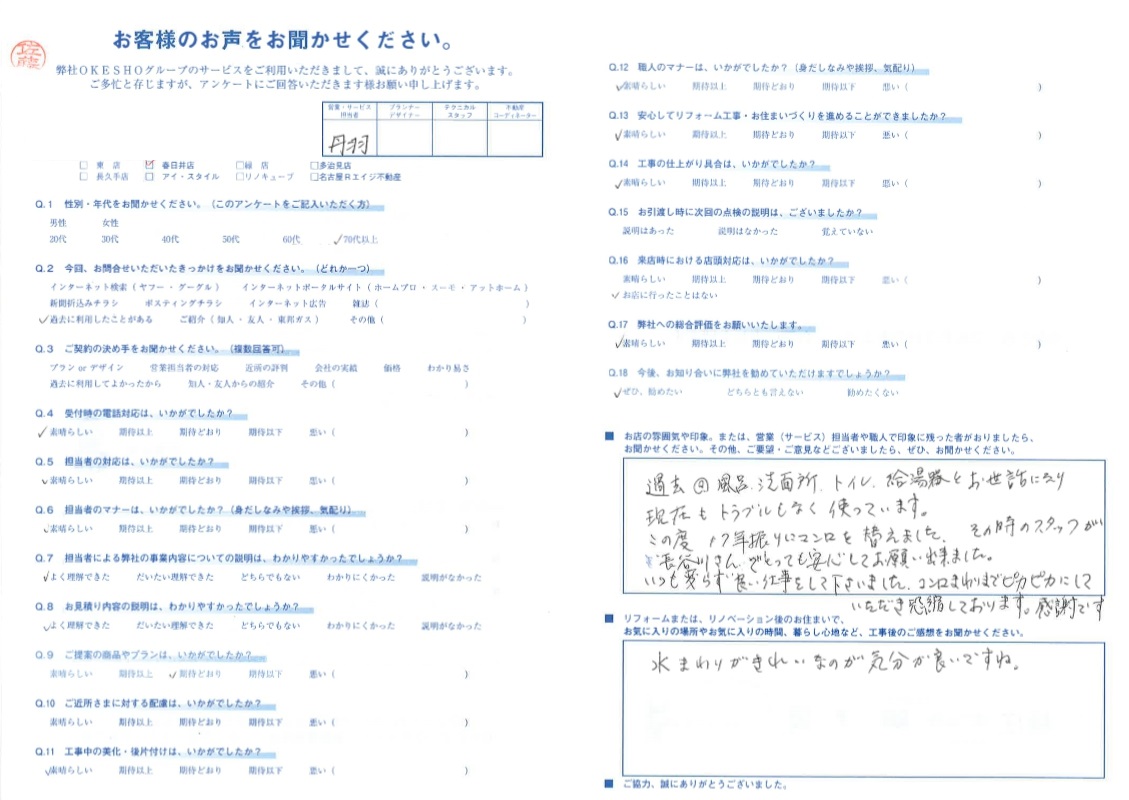 この度 17年振りにコンロを替えました。その時のスッタフが長谷川さんで とっても安心してお願い出来ました。