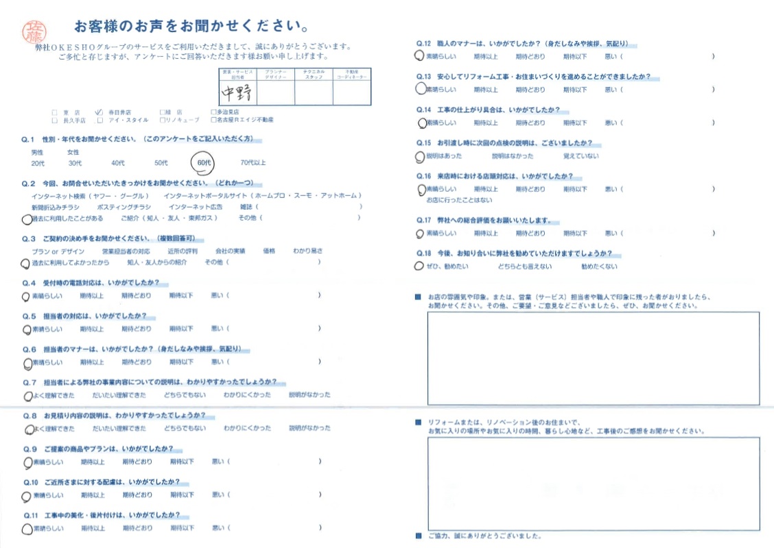 お客様アンケート一覧