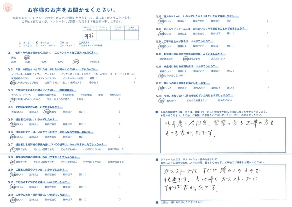 昨年度、今回共、営業の方も工事の方もとても良かったです。