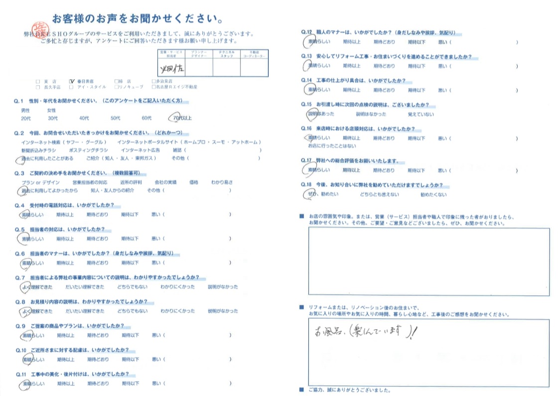 リフォームまたは、リノベーション後のお住まいで、お気に入りの場所やお気に入りの時間、暮らし心地など、工事後のご感想をお聞かせください。