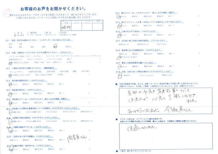 お店の雰囲気や印象。または、営業(サービス)担当者や職人で印象に残った者がおりましたら、お聞かせください。その他、ご要望・ご意見などございましたら、ぜひ、お聞かせください。