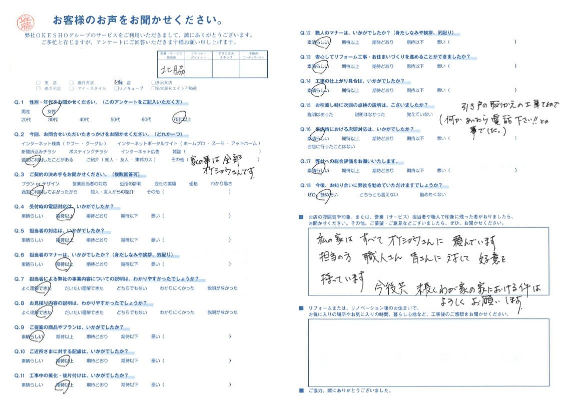 お店の雰囲気や印象。または、営業(サービス)担当者や職人で印象に残った者がおりましたら、お聞かせください。その他、ご要望・ご意見などございましたら、ぜひ、お聞かせください。