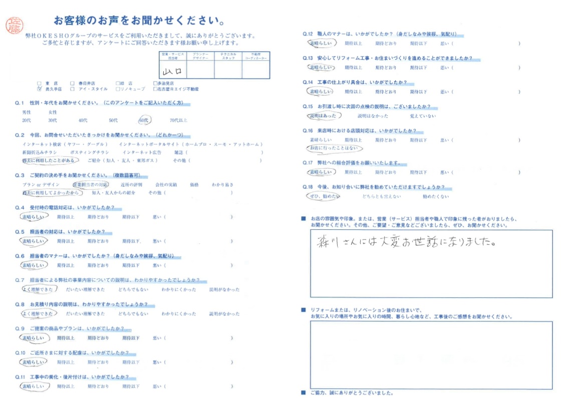 お店の雰囲気や印象。または、営業(サービス)担当者や職人で印象に残った者がおりましたら、お聞かせください。その他、ご要望・ご意見などございましたら、ぜひ、お聞かせください。