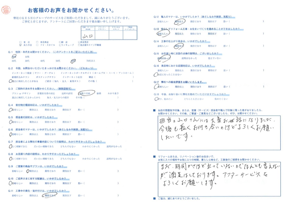 お店の雰囲気や印象。または、営業(サービス)担当者や職人で印象に残った者がおりましたら、お聞かせください。その他、ご要望・ご意見などございましたら、ぜひ、お聞かせください。